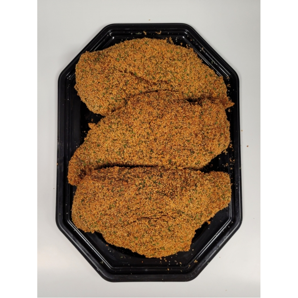 Verse kipschnitsel gepaneerd met tuinkruidenparneer.