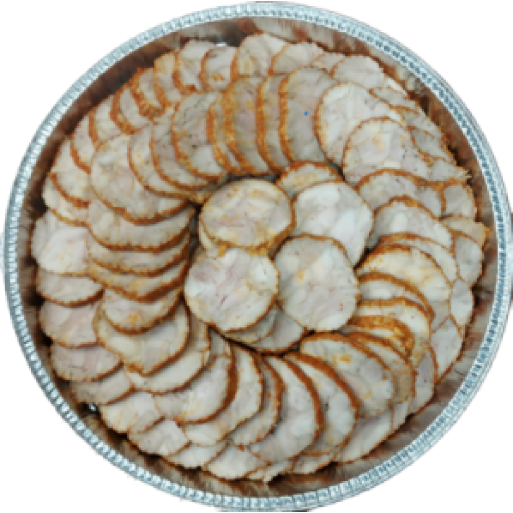Hapjespan met 100 plakken gegrilde kiprollade.