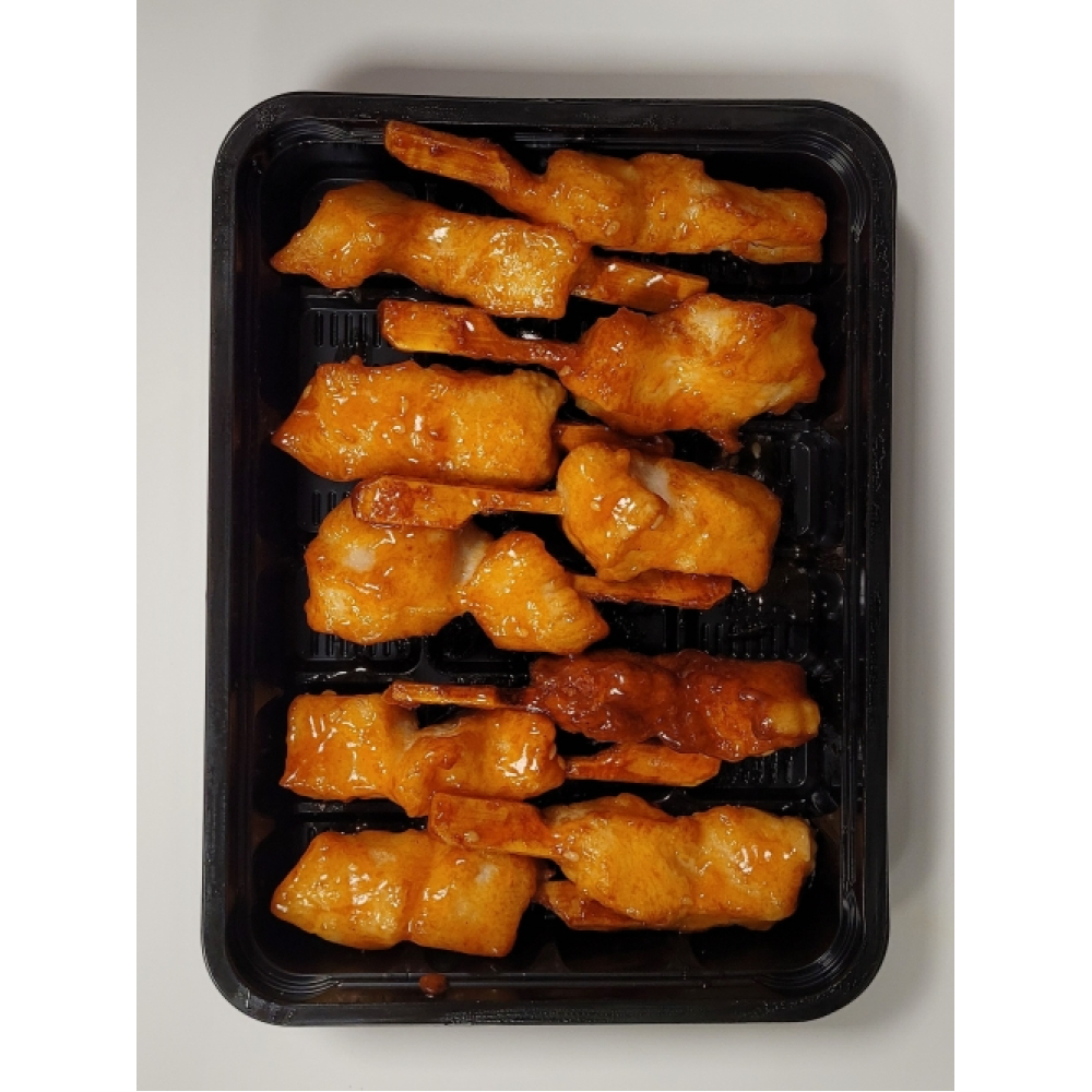 Mini kipsate'tjes in zoete sesam saus, kant en klaar hapje.